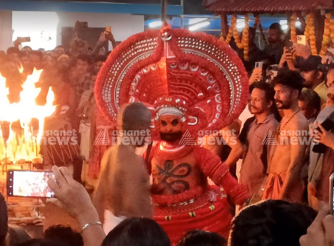 തീരത്തൊരു കപ്പലുകണ്ടു, കനല്ക്കുന്നില് നിന്നിറങ്ങി കടലിലേക്ക് ഓടി തെയ്യം!