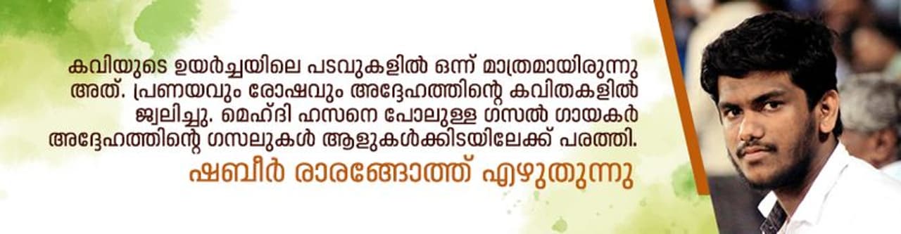 ഉര്ദു കാവ്യ പ്രപഞ്ചത്തില് കാല്പനികതയുടെ വര്ണപട്ടം പറത്തുകയും വിപ്ലവത്തിന്റെ കൊടിയുയര്ത്തുകയും ചെയ്ത അഹ്മദ് ഫറാസിന്റെ വേര്പാടിന് നാളെ 12 വര്ഷം തികയുന്നു.