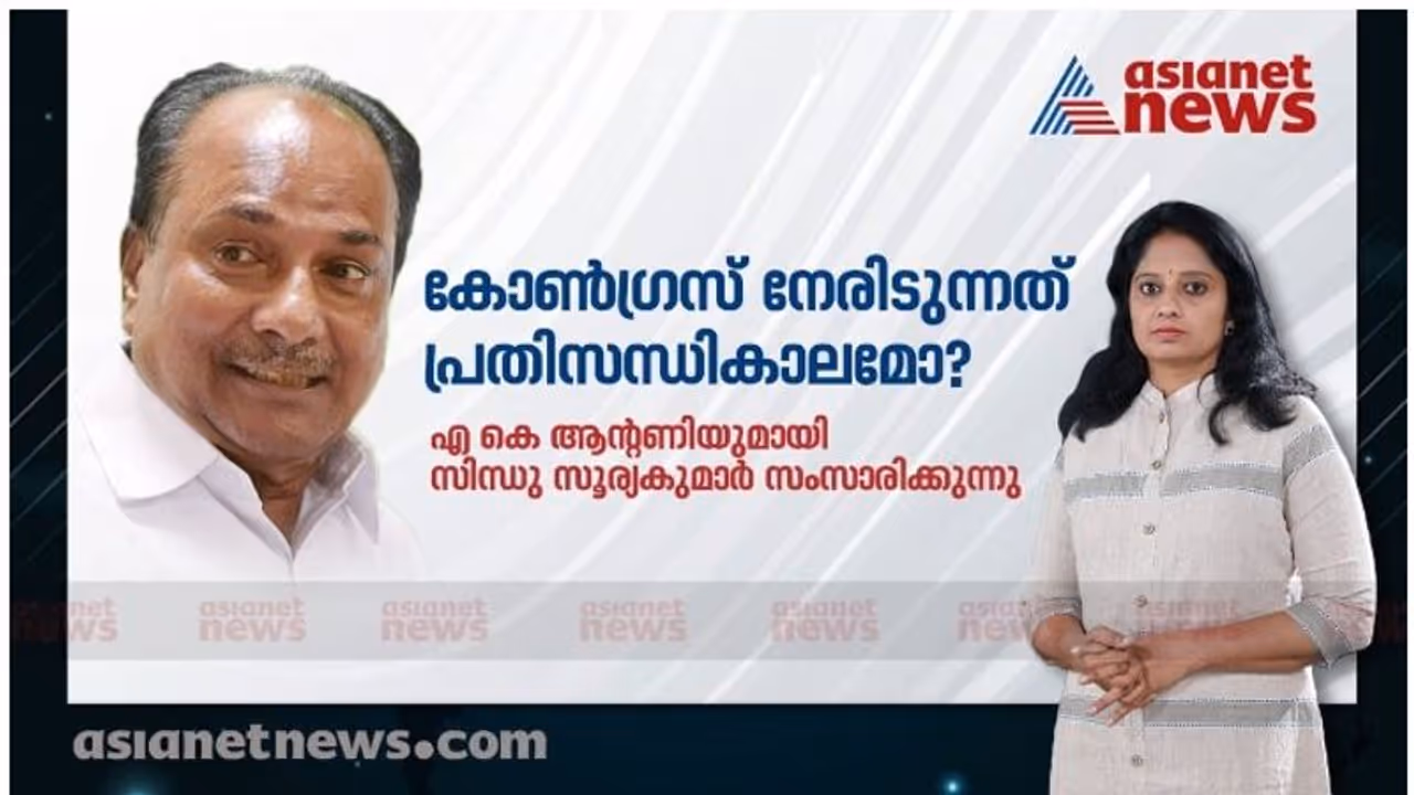 കോൺഗ്രസിന്റെ മുതിർന്ന നേതാവ് എ.കെ.ആന്റണിയുമായി ഏഷ്യാനെറ്റ് ന്യൂസ് അസിസ്റ്റന്റ് എക്സിക്യൂട്ടീവ് എഡിറ്റർ സിന്ധു സൂര്യകുമാർ നടത്തിയ അഭിമുഖം