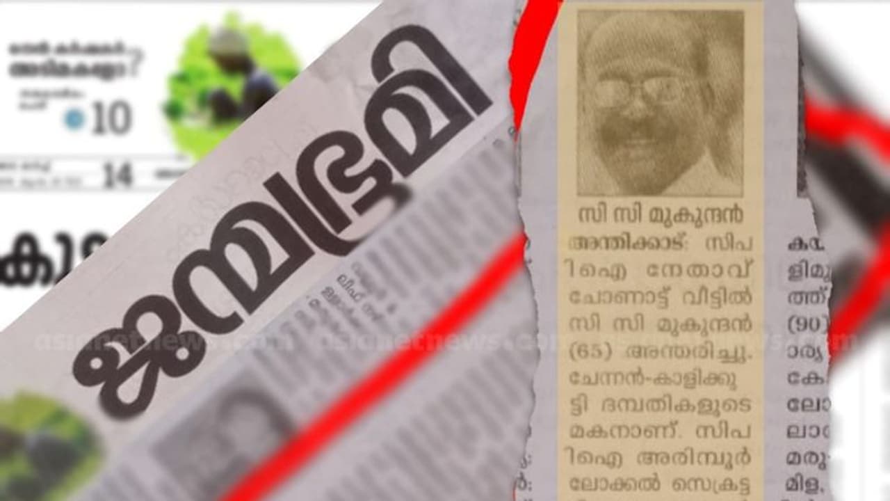 തൃശൂര് ജില്ലയിലെ നാട്ടിക മണ്ഡലത്തിലെ സിപിഐ സ്ഥാനാര്ത്ഥി സിസി മുകുന്ദന്റെ ഫോട്ടോ സഹിതമാണ് ചരമ കോളത്തിൽ വാര്ത്ത