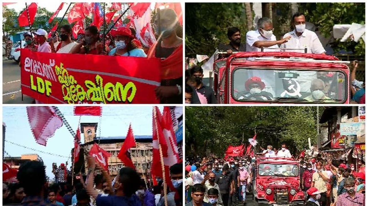 തിരുവനന്തപുരം: കൊട്ടിക്കലാശത്തിന് സമാനമായ ആവേശത്തോടെയും ആഘോഷത്തോടെയും ഒരുമാസത്തിലേറെ നീണ്ട പരസ്യപ്രചാരണം അവസാനിപ്പിച്ച് എല്ഡിഎഫ്. അവസാനഘട്ടത്തില് കൊട്ടും പാട്ടുമായി ജനങ്ങളിലേക്കെത്തിയ സ്ഥാനാര്ത്ഥികള് വിജയപ്രതീക്ഷയില് തന്നെയാണ്. ധര്മ്മടത്ത് ആവേശം നിറച്ചായിരുന്നു എൽഡിഎഫ് സ്ഥാനാർത്ഥി പിണറായി വിജയന്റെ റോഡ് ഷോ. മണിക്കൂറുകള് നീണ്ട റോഡ് ഷോയില് വന് ജനാവലിയാണ് പങ്കെടുത്തത്.