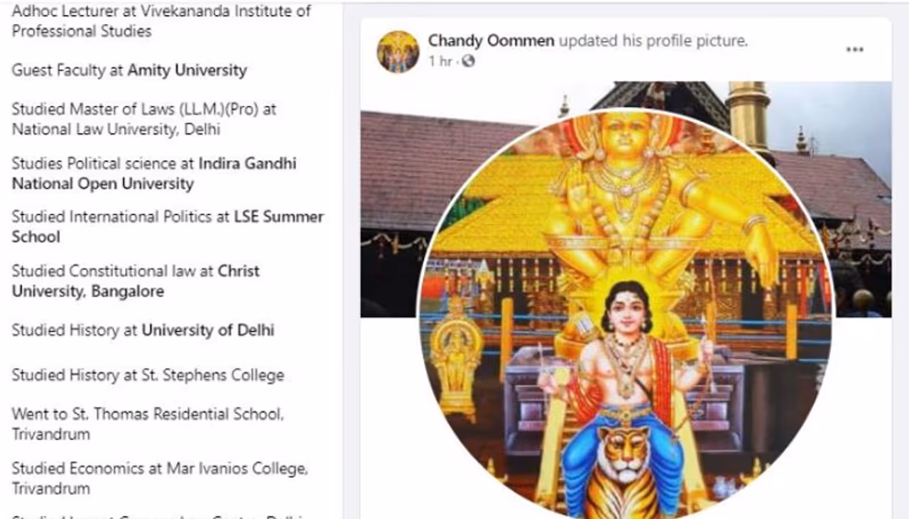 വോട്ടെണ്ണലിന്റെ തലേ ദിവസമാണ് പ്രൊഫൈല് ചിത്രം മാറ്റിയത്. നിയമസഭാ തെരഞ്ഞെടുപ്പ് പ്രചാരണ സമയത്ത് ശബരിമല വിഷയം ആദ്യം ഉന്നയിച്ചത് ഉമ്മൻ ചാണ്ടിയായിരുന്നു.
