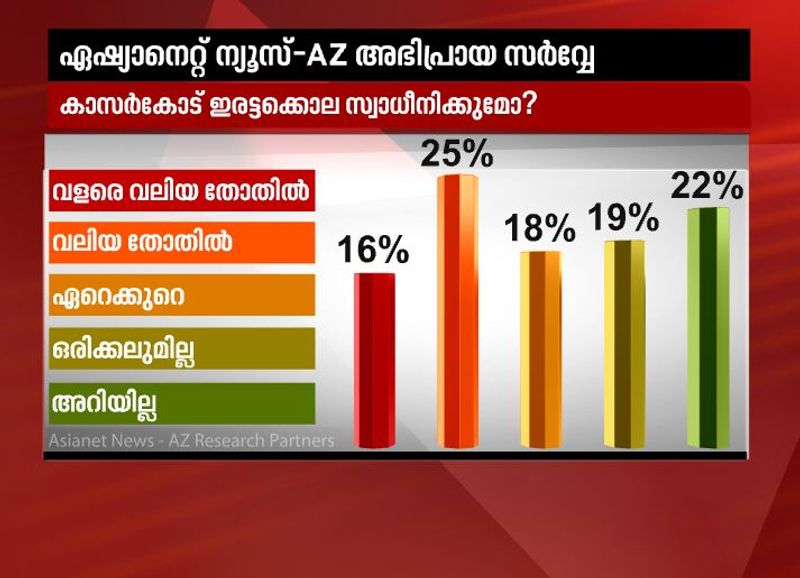 തെരഞ്ഞെടുപ്പ് കാലത്ത് സിപിഎമ്മിനെ ഏറെ പ്രതിരോധത്തിലാക്കിയ വിഷയമാണിത്. എങ്ങനെയാണ് ലോക്സഭാ തെരഞ്ഞെടുപ്പിൽ ഈ കൊലപാതകം വിഷയമാവുക? ഏഷ്യാനെറ്റ് ന്യൂസ് - AZ റിസർച്ച് പാർട്ണേഴ്സ് പ്രീപോൾ സർവേ ഫലം പറയുന്നതിങ്ങനെയാണ്: