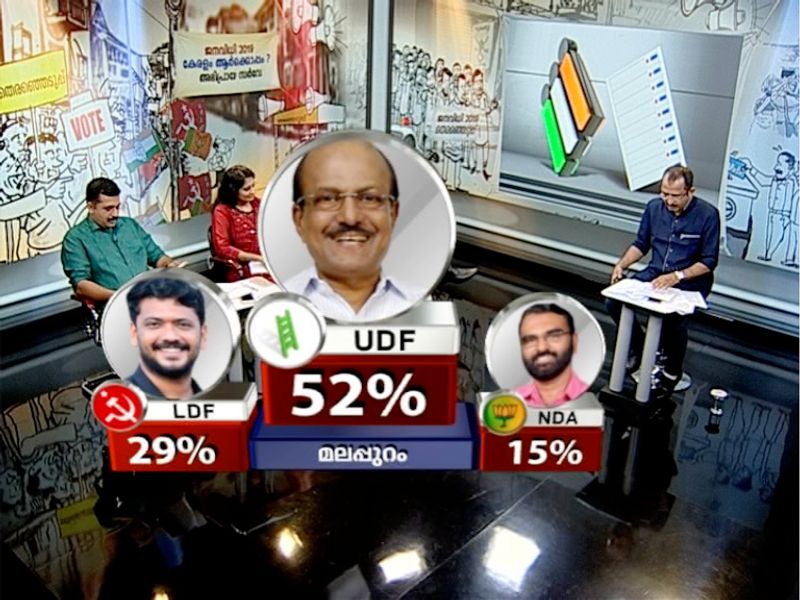 വി പി സാനുവിന് കുഞ്ഞാലിക്കുട്ടിക്ക് വലിയ വെല്ലുവിളി നല്കാനാവില്ലെന്നാണ് സര്വേ തെളിയിക്കുന്നത്. 52 ശതമാനം വോട്ട് നേടി കുഞ്ഞാലിക്കുട്ടി ജയിക്കുമെന്നാണ് അഭിപ്രായ സര്വ്വേ പറയുന്നത്. വി പി സനുവിന് 29 ശതമാനം വോട്ട് മാത്രമാകും സ്വന്തമാക്കുക.