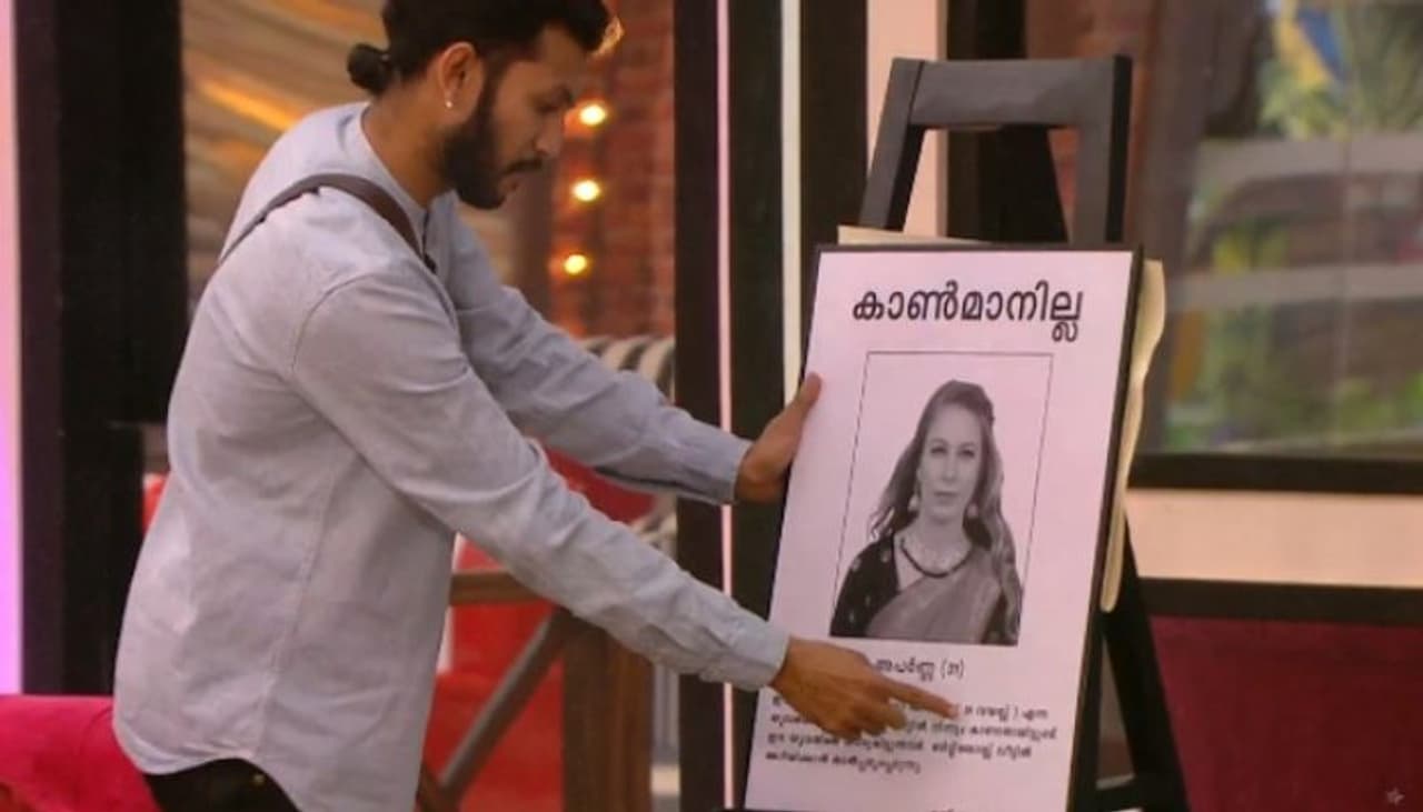 സ്റ്റോറില് വെച്ച ഒരു ഫോട്ടോ എടുത്തുകൊണ്ടുവരാൻ മോഹൻലാല് ആവശ്യപ്പെട്ടു. സ്റ്റാൻഡില് വെച്ച ഫോട്ടോ അപര്ണയുടേതായിരുന്നു. അപര്ണ 31, ഫോട്ടോയില് കാണുന്ന 31 വയസുള്ള യുവതിയെ ബിഗ് ബോസ് വീട്ടില് നിന്ന് കാണാതായിട്ടുണ്ട്. ഈ വ്യക്തിയെ കണ്ടുകിട്ടുന്നവര് ബിഗ് ബോസ് വീട്ടില് ഏല്പ്പിക്കുക എന്ന് പ്രേക്ഷകര് എന്നായിരുന്നു ക്യാപ്ഷൻ. അപര്ണ ഇതല്ല, ഒരുപാട് സാധ്യതകളുണ്ട് എന്ന് പ്രേക്ഷകര് പറയുന്നു എന്നായിരുന്നു ഫോട്ടോയ്ക്ക് ക്യാപ്ഷനായി എഴുതിയിരുന്നത്. അപര്ണയെ കാണ്മാനില്ല എന്നെഴുതിയ ഫോട്ടോ ഒരു ലുക്ക് ഔട്ട് നോട്ടീസ് പോലെയാണെന്ന് മോഹൻലാല് പറഞ്ഞു. അപര്ണ ആരാണെന്ന് മനസിലാക്കാൻ മാസ്ക് ധരിപ്പിച്ച് മത്സരാര്ഥികളുടെ ചോദ്യങ്ങള്ക്ക് മറുപടിയും മോഹൻലാല് പറയിപ്പിച്ചു.