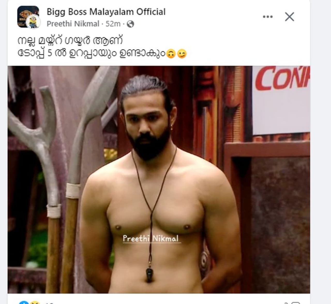 വെള്ളത്തിൽ ഇറങ്ങുന്ന ടാസ്ക് ആയത് കൊണ്ട് ബിഗ് ബോസ് നിയോഗിച്ച ലൈഫ് ഗാർഡ് ആണിത്. ഗൗതം എന്നാണ് അദ്ദേഹത്തിന്റെ പേര്. വളരെ കാലത്തിന് ശേഷം മറ്റൊരു മനുഷ്യനെ കണ്ട സന്തോഷത്തിലായിരുന്നു മത്സരാർത്ഥികൾ എല്ലാവരും. ഈ എപ്പിസോഡ് പുള്ളി തൂക്കിയെന്നാണ് ജുനൈസ് പറഞ്ഞത്. എന്തായാലും ബിഗ് ബോസ് പ്രേക്ഷകർക്കിടയിൽ ഈ ജിമ്മൻ ലൈഫ് ഗാർഡ് ശ്രദ്ധനേടി കഴിഞ്ഞു. പലരും തങ്ങൾ ഗൗതം ഫാൻസ് ആയെന്നാണ് പറയുന്നത്.
