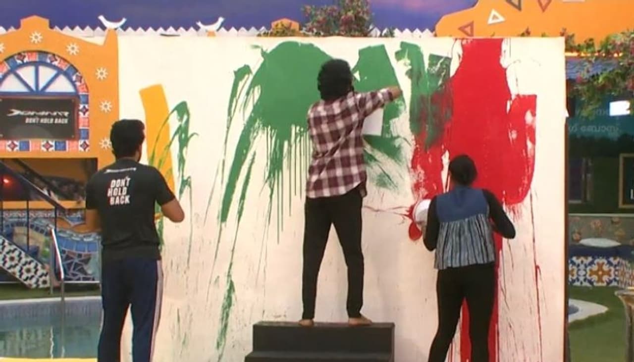 ഒരു വലിയ കാന്വാസും മൂന്ന് നിറങ്ങളിലുള്ള പെയിന്റുകളുമാണ് മത്സരത്തിനായി ബിഗ് ബോസ് തയ്യാറാക്കിയിരുന്നത്. ചുവപ്പ്, മഞ്ഞ, പച്ച നിറങ്ങളിലായിരുന്നു പെയിന്റുകള്. ഓരോ നിറം തിരഞ്ഞെടുക്കാനായിരുന്നു മത്സരാര്ഥികളോട് മോഹന്ലാലിന്റെ ആദ്യ നിര്ദ്ദേശം. ഇതുപ്രകാരം അഡോണി ചുവപ്പും അനൂപ് മഞ്ഞയും സന്ധ്യ ചുവപ്പും നിറങ്ങള് തിരഞ്ഞെടുത്തു. ബസര് ടു ബസര് നടന്ന മത്സരത്തില് ക്യാന്വാസിന്റെ പരമാവധി ഭാഗത്ത് സ്വന്തം നിറങ്ങള് ബ്രഷും റോളറും ഉപയോഗിച്ച് കാന്വാസിലേക്ക് തേക്കുന്ന ആളായിരുന്നു വിജയി.