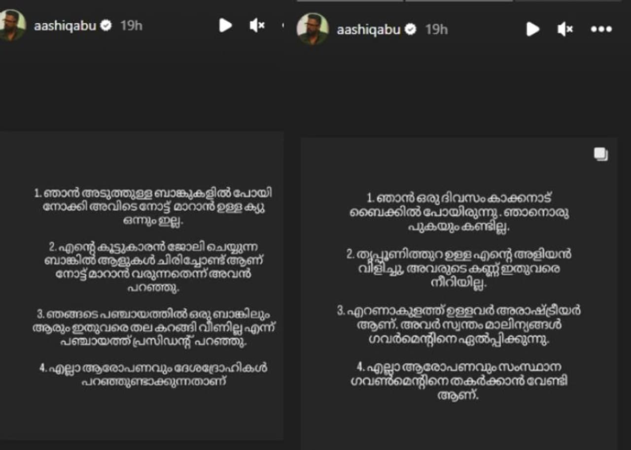 അതേസമയം ആഷിക് അബു പങ്കുവച്ചത് ആക്ഷേപഹാസ്യ സ്വഭാവത്തിലുള്ള പോസ്റ്റ് ആണെന്ന് മനസിലാക്കാതെ അദ്ദേഹത്തെ സോഷ്യല് മീഡിയയില് വിമര്ശിക്കുന്നവരുമുണ്ട്.