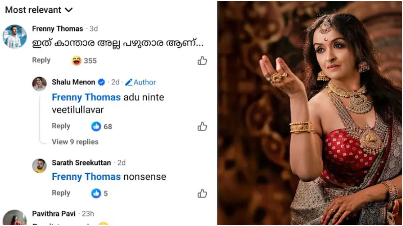 കമന്റിൽ ബോക്സിൽ പരിഹാസം, തിരിച്ചടിച്ച് ശാലുമേനോൻ. 'കാന്താര തരംഗം. ചെറിയ ശ്രമമാണ്. ക്ഷമിക്കണം' എന്ന അടിക്കുറിപ്പോടെയാണ് നടി ചിത്രങ്ങൾ പങ്കുവച്ചത്.