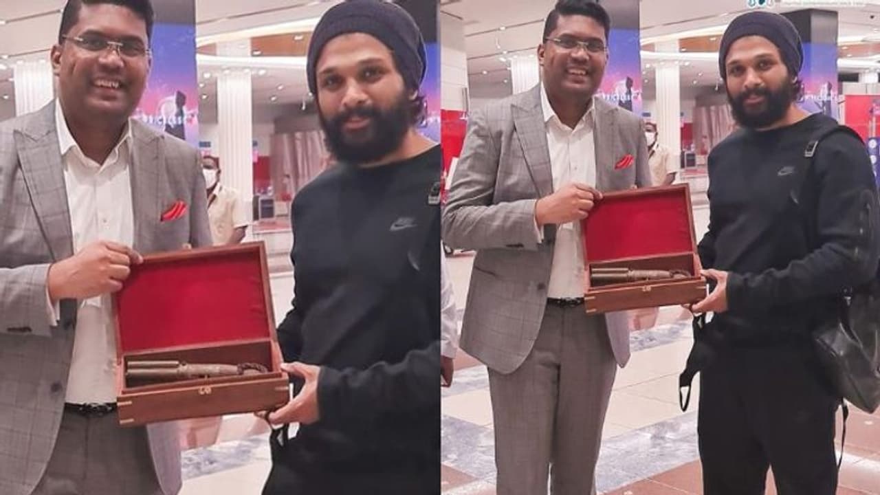 യു.എ.ഇയില് അല്ലു അര്ജുന് എത്തിയപ്പോഴാണ് പ്രവാസി മലയാളിയായ റിയാസ് കില്ട്ടണ് അല്ലു അര്ജുന് വർഷങ്ങൾ പഴക്കമുള്ള തോക്ക് നല്കിയത്. ഇതിനോടകം നിരവധി പേരാണ് അല്ലു അര്ജുനൊപ്പം റിയാസ് കില്ട്ടണ് നില്ക്കുന്ന ചിത്രം പങ്കുവെച്ചത്. സംവിധായകന് ഒമര് ലുലുവും ചിത്രം ഫേസ്ബുക്കില് പങ്കുവെച്ചിട്ടുണ്ട്.