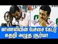 അഗരം ഫൗണ്ടേഷന് സംഘടിപ്പിച്ച പുസ്തക പ്രകാശന ചടങ്ങില് സൂര്യ പൊട്ടിക്കരയുന്ന വീഡിയോ സമൂഹമാധ്യമങ്ങളില് വൈറലാണ്. വിദ്യാഭ്യാസ മന്ത്രിയടക്കം പങ്കെടുത്ത വേദിയിലായിരുന്നു സൂര്യ പൊട്ടിക്കരഞ്ഞ്.