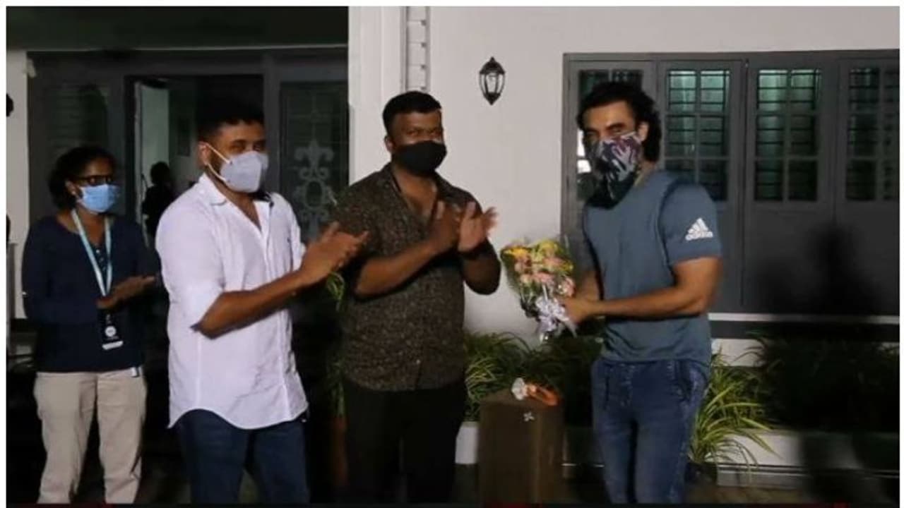 കൊച്ചി: സിനിമാ ചിത്രീകരണത്തിനിടെ പരുക്കേറ്റ് വിശ്രമത്തിലായിരുന്ന നടൻ ടൊവിനോ തോമസ് ലൊക്കേഷനിലേക്ക് തിരിച്ചെത്തി. ‘കാണെക്കാണെ’എന്ന സിനിമയുടെ ലൊക്കേഷനിലേക്കെത്തിയ താരത്തിന് വലിയ വരവേല്പ്പാണ് സിനിമയുടെ അണിയറ പ്രവര്ത്തകര് നല്കിയത്. കേക്ക് മുറിച്ചായിരുന്നു ടൊവിനോയുടെ തിരിച്ചുവരവ് ആഘോഷിച്ചത്.