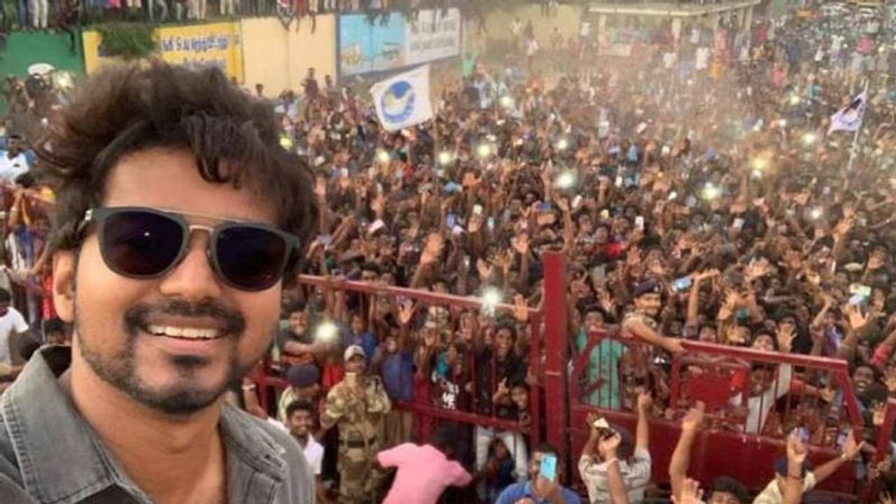 കാരവന് മുകളില് കയറിനിന്ന് അവര്ക്കുനേരെ കൈവീശിയ വിജയ് സെല്ഫി പകര്ത്തുകയായിരുന്നു. ഇതോടെ ചിത്രം സോഷ്യല് മീഡിയയില് വൈറലായി. നടന് സണ്ണി വെയ്ന് അടക്കം നിരവധി പേരാണ് ചിത്രം ഇതിനോടകം തന്നെ പങ്കുവച്ചത്.