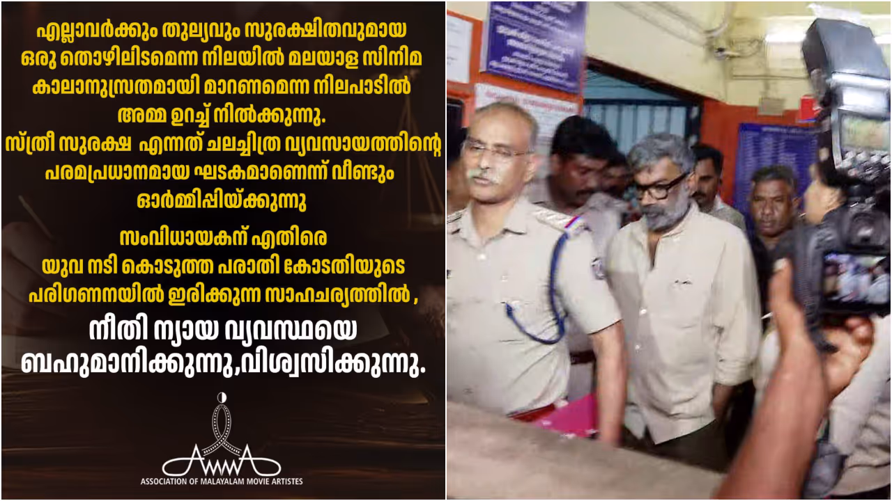 കൊച്ചി: സംവിധായകൻ രഞ്ജിത്തിനെതിരായ കേസിൽ അവൾക്കൊപ്പം എന്ന നിലപാട് പറയാതെ താരസംഘടന അമ്മ. രഞ്ജിത്തിൻ്റെ പേര് പറയാതെ നീതിന്യായ വ്യവസ്ഥയെ ബഹുമാനിക്കുന്നുവെന്ന് മാത്രമാണ് അമ്മയുടെ പ്രതികരണം. സംവിധായകനെതിരെ യുവനടി കൊടുത്ത പരാതി കോടതിയുടെ പരിഗണനയിലിരിക്കുന്നതിനാൽ നീതിന്യായ വ്യവസ്ഥയെ ബഹുമാനിക്കുന്നുവെന്നും വിശ്വസിക്കുന്നുവെന്നുമാണ് പ്രതികരണത്തിലുള്ളത്. എന്നാൽ സംവിധായകൻ്റെ പേരോ അവൾക്കൊപ്പം നിൽക്കുന്നുവെന്നോ പുറത്തിറക്കിയ കുറിപ്പിലില്ല. കഴിഞ്ഞ ദിവസമാണ് യുവനടിയുടെ പരാതിയിൽ രഞ്ജിത്ത് അറസ്റ്റിലാവുന്നത്. സിനിമാ സെറ്റിൽ വെച്ച് രഞ്ജിത്ത് യുവനടിയെ ലൈംഗികമായി ആക്രമിച്ചെന്നാണ് പരാതി.