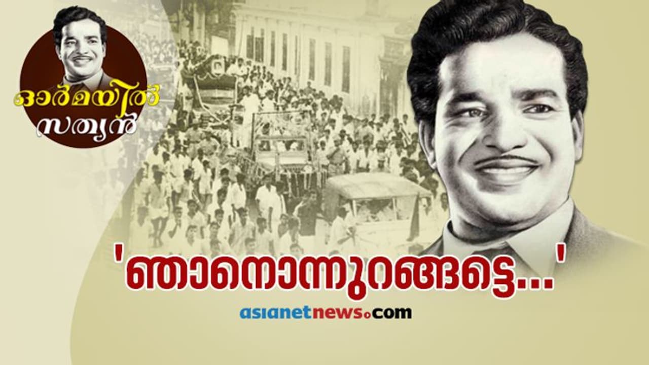 മലയാള ചലച്ചിത്രത്തിന്റെ അഭിമാനസ്തംഭമാണ് എന്നും സത്യൻ. ആദ്യമായി ദേശീയ അവാര്ഡ് നേടിയ മലയാള ചിത്രമായ നീലക്കുയിലിലെ നായകൻ. ചുരുങ്ങിയ കാലയളവില് തന്നെ മലയാളത്തിന്റെ എക്കാലത്തെയും മികച്ച കഥാപാത്രങ്ങളായി മാറിയ നടൻ. അഭിനയിച്ചുകൊണ്ടിരിക്കുമ്പോള് മരിച്ചുവീഴണമെന്ന് കൊതിച്ച നടൻ. അത്രത്തോളം സിനിമയെ സ്നേഹിച്ചിരുന്നു സത്യൻ. ഇൻക്വിലാബ് സിന്ദാബാദ് എന്ന സിനിമയില് അഭിനയിച്ചതിനു ശേഷം സ്വയം കാറോടിച്ച് ആശുപത്രിയില് എത്തിയ സത്യൻ ചികിത്സയിലിരിക്കേ അധികം വൈകാതെ വിടപറയുകയായിരുന്നു.
