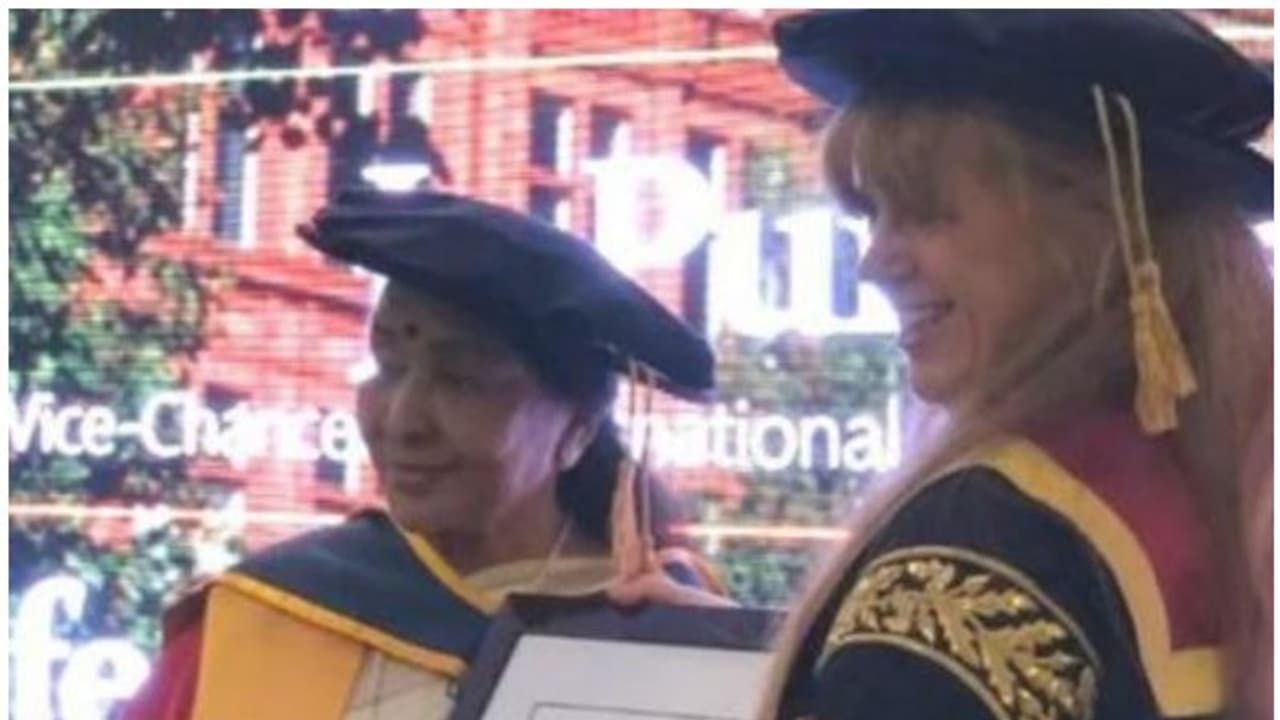 രാജ്യത്ത് ഏറ്റവും ആരാധകരുള്ള ഇതിഹാസ ഗായികയാണ് ആശാ ഭോസ്ലെയും. ആശ ഭോസ്ലയെ ഇംഗ്ലണ്ട് ഗ്രെറ്റര് മാഞ്ചസ്റ്ററിലെ സാല്ഫോര്ഡ് സര്വ്വകലാശ ഹോണററി ഡോക്ടറേറ്റ് നല്കി ആദരിച്ചിരിക്കുന്നു. ആദരവ് ഏറ്റുവാങ്ങുന്നതിന്റെ ചിത്രം ആശാ ഭോസ്ല സാമൂഹ്യമാധ്യമത്തിലൂടെ പങ്കുവച്ചിട്ടുണ്ട്.