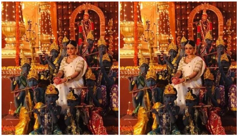 ശ്രീകൃഷ്ണ വിഗ്രഹവും ഫോട്ടോയിലുണ്ട്. നിരവധി ഉണ്ണിക്കണ്ണൻമാരും. തൂവെള്ള നിറത്തിലുള്ള ദാവണിയണിഞ്ഞ് നെറ്റിച്ചുട്ടിയും മുല്ലപ്പൂവുമൊക്കെയിട്ടാണ് ഭാവന ചിത്രത്തിലുള്ളത്. എന്തായാലും ഫോട്ടോ ആരാധകര് ഏറ്റെടുത്തുകഴിഞ്ഞു.