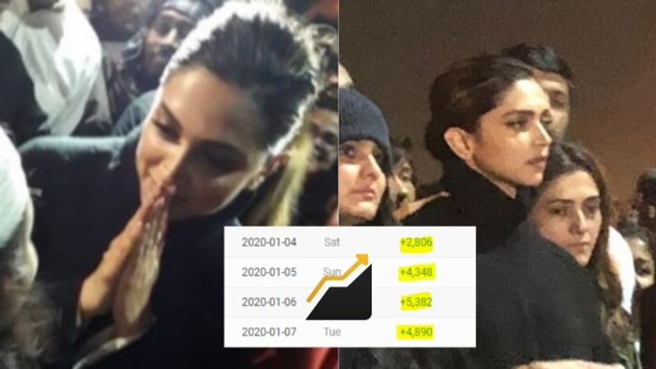 ഛപക് ബഹിഷ്കരിക്കാന് ആഹ്വാനം ചെയ്തതിന്റെ പിറ്റേ ദിവസം തന്നെ ട്വിറ്ററില് ദീപികയെ ഫോളോ ചെയ്യുന്ന ആളുകളുടെ എണ്ണത്തില് വമ്പന് വര്ദ്ധനവ് തന്നെയാണ് ഉണ്ടായിരിക്കുന്നത്.