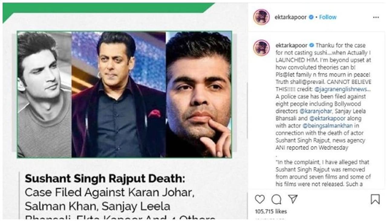 സുശാന്തിന്റെ മരണത്തില് കുടുംബത്തിനും സുഹൃത്തുക്കള്ക്കും വിഷമിക്കാനെങ്കിലും സമയം നല്കണം. സത്യ പുറത്തുവരുമെന്നും ഏക്ത കപൂര് ഇന്സ്റ്റഗ്രാം കുറിപ്പില് പ്രതികരിച്ചു. സുശാന്തിന് ആദ്യമായി അവസരം നല്കിയത് താനാണ്, ഈ കേസില് സുശാന്തിനെ ഉള്പ്പെടുത്താത്തതിന് നന്ദിയുണ്ടെന്നും ഏക്ത
