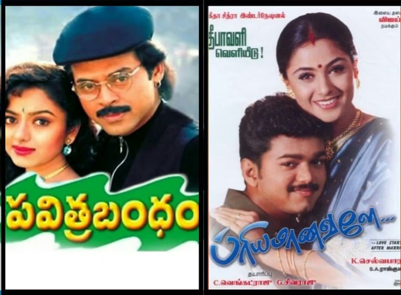 വിജയ് സിമ്രാന് എന്നിവര് അഭിനയിച്ച് ഹിറ്റായ പ്രിയമാനവളെ എന്ന ചിത്രം 1996 ല് ഇറങ്ങിയ നാഗാര്ജ്ജുന നായകനായ പവിത്ര ബന്ധ എന്ന ചിത്രത്തിന്റെ റീമേക്കാണ്.
