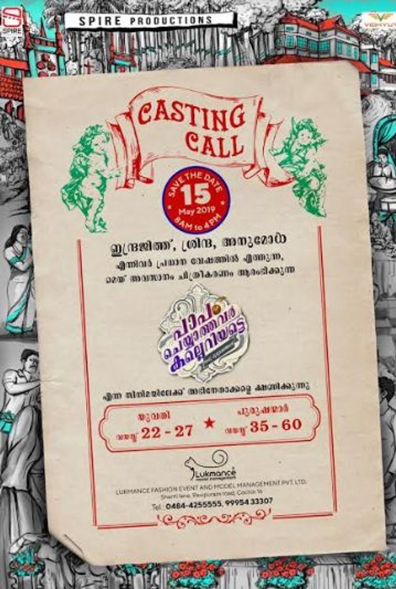സ്പൈര് പ്രൊഡക്ഷന്സിന്റെ ബാനറില് സഞ്ജു എസ് ഉണ്ണിത്താനാണ് പാപം ചെയ്യാത്തവര് കല്ലെറിയട്ടെ നിര്മിക്കുന്നത്. മെയ് അവസാന വാരത്തോടെ ഷൂട്ടിങ് ആരംഭിക്കുന്ന ചിത്രത്തിലേക്കായി അഭിനേതാക്കളെ തേടുകയാണ് അണിയറപ്രവർത്തകർ. 22 മുതല് 27 വരെ വയസുള്ള യുവതികള്ക്കും 35 മുതല് 60 വരെ വയസുള്ള പുരുഷന്മാര്ക്കുമാകും അവസരം.