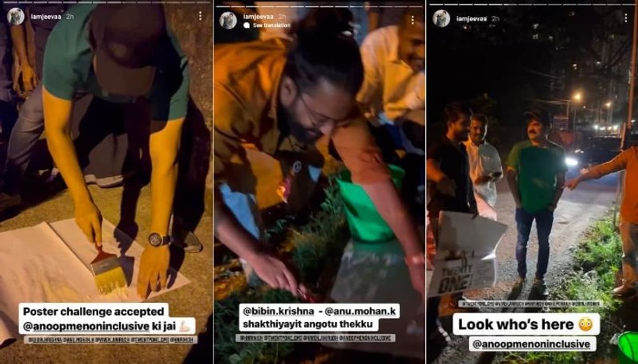 എന്നാല് പോസ്റ്റര് ഒട്ടിക്കുക മാത്രമല്ല ജീവ ചെയ്തത്, താന് ചെയ്ത പോലെ പോസ്റ്റര് ഒട്ടിക്കാന് അനൂപ് മേനോനെയും ബിബിന് കൃഷ്ണയെയും ചലഞ്ച് ചെയ്യുകയും ചെയ്തിരുന്നു. ജീവയുടെ ഈ ചലഞ്ചാണ് ഇപ്പോള് സോഷ്യല് മീഡിയയില് വൈറലായിരിക്കുന്നത്. നിരവധി പേരാണ് ജീവയുടെ വീഡിയോ സ്റ്റോറി ഷെയര് ചെയ്തിരിക്കുന്നത്.