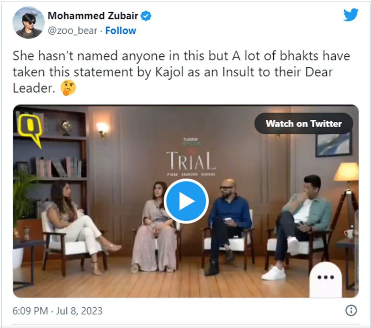 ഷാരൂഖ് ഖാൻ, സൽമാൻ ഖാൻ തുടങ്ങിയവർക്കൊപ്പമുള്ള കജോളിന്റെ ഫോട്ടോകൾ ട്വീറ്റ് ചെയ്തും ആക്ഷേപം ഉന്നയിക്കുന്നുണ്ട്.