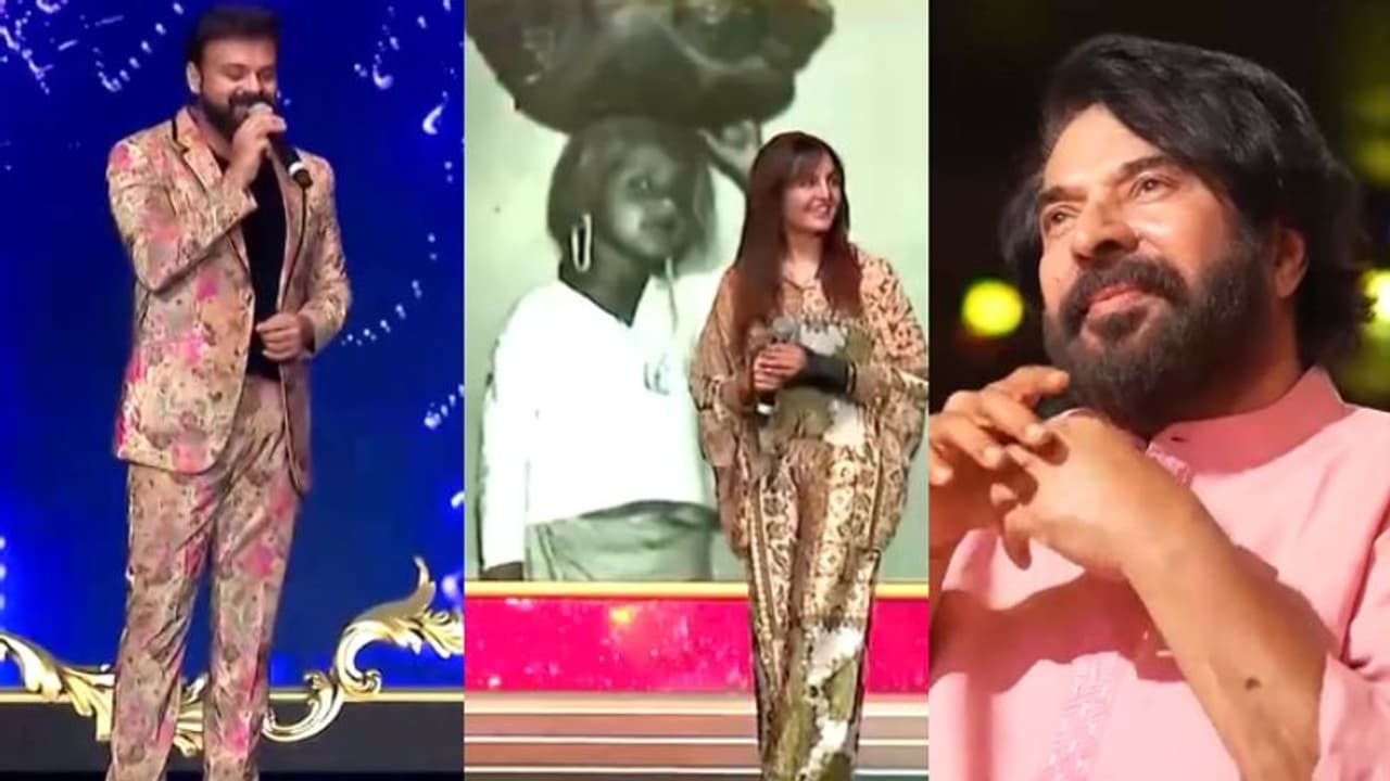 വേദിയിലെത്തിയ മഞ്ജു വാര്യരോട് പാടാൻ ആവശ്യപ്പെടുകയായിരുന്നു അവതാരക. എന്നാല് ഒരു ചോദ്യത്തിന് മറുപടി പറഞ്ഞാല് പാട്ട് പാടുന്നതില് നിന്ന് ഒഴിവാക്കാമെന്ന് രമേഷ് പിഷാരടി വ്യക്തമാക്കി. തുടര്ന്ന് വേദിയിലെ സ്ക്രീനില് ഒരു ഫോട്ടോ കാണിച്ചു. ഏതോ ഒരു കുട്ടിയുടെ ഡാൻസിന്റെ ഫോട്ടോയായിരുന്നു അത്. മഞ്ജു വാര്യരോട് ആത്മബന്ധമുള്ളതും ആളാണെന്നും സിനമയിലുള്ള ഒരാളാണെന്നും രമേഷ് പിഷാരടി വ്യക്തമാക്കി. സദസ്സില് നിന്നുള്ളവര് പറഞ്ഞത് ഭാവനയെന്നായിരുന്നു. അതുകേട്ട് മഞ്ജു വാര്യരും അങ്ങനെ തന്നെ മറുപടി നല്കി. ഓ എല്ലാവര്ക്കും മനസിലായല്ലോയെന്ന് പറഞ്ഞ രമേഷ് പിഷാരടി പിന്നീട് അത് ഭാവന അല്ലെന്ന് വ്യക്തമാക്കി തമാശ കാട്ടി. കുഞ്ചാക്കോ ബോബനും മമ്മൂക്കയ്ക്കും ആലോചിക്കാമെന്നും രമേഷ് പിഷാരടി വ്യക്തമാക്കിയിരുന്നു. ഒടുവില് മമ്മൂട്ടി സ്റ്റേജിന് സമീപത്തേയ്ക്ക് വന്ന് രമേഷ് പിഷാരടി നല്കിയ മൈക്കിലൂടെ കുറുമ്പോടെ ശബ്ദം താഴ്ത്തി രഹസ്യമെന്നോണം ഉത്തരം പറഞ്ഞു. കുഞ്ചാക്കോ ബോബൻ എന്നായിരുന്നു ഉത്തരം.