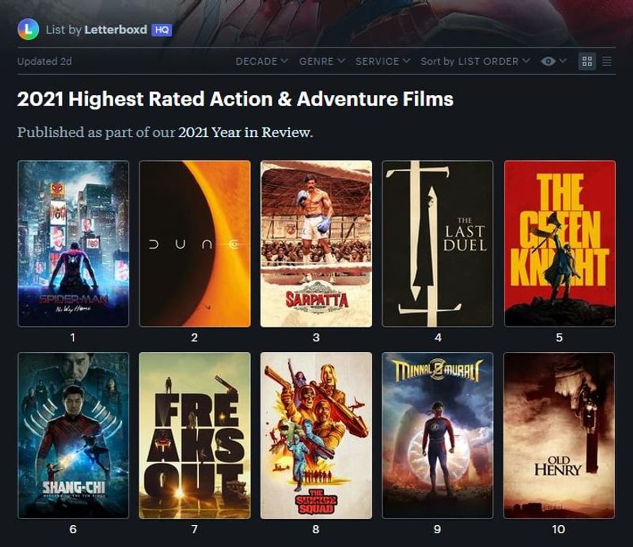 2021ല് ഏറ്റവുമധികം റേറ്റിംഗ് ലഭിച്ച അന്തര്ദേശീയ സിനിമകളുടെ ലിസ്റ്റില് ആദ്യ 20ല് മറ്റു രണ്ട് മലയാള ചിത്രങ്ങളും ഇടംപിടിച്ചിട്ടുണ്ട്. ജിയോ ബേബി സംവിധാനം ചെയ്ത ദ് ഗ്രേറ്റ് ഇന്ത്യന് കിച്ചണ്, ദിലീഷ് പോത്തന്റെ ജോജി എന്നിവയാണ് അവ. ഗ്രേറ്റ് ഇന്ത്യന് കിച്ചണ് പത്താം സ്ഥാനത്തും ജോജി 18-ാം സ്ഥാനത്തുമാണ്. തമിഴില് നിന്ന് സര്പട്ട പരമ്പരൈ, ജയ് ഭീം, കര്ണ്ണന്, ബോളിവുഡില് നിന്ന് സര്ദാര് ഉദ്ധം എന്നിവയും ഈ ലിസ്റ്റില് ഇടംപിടിച്ചിട്ടുണ്ട്.