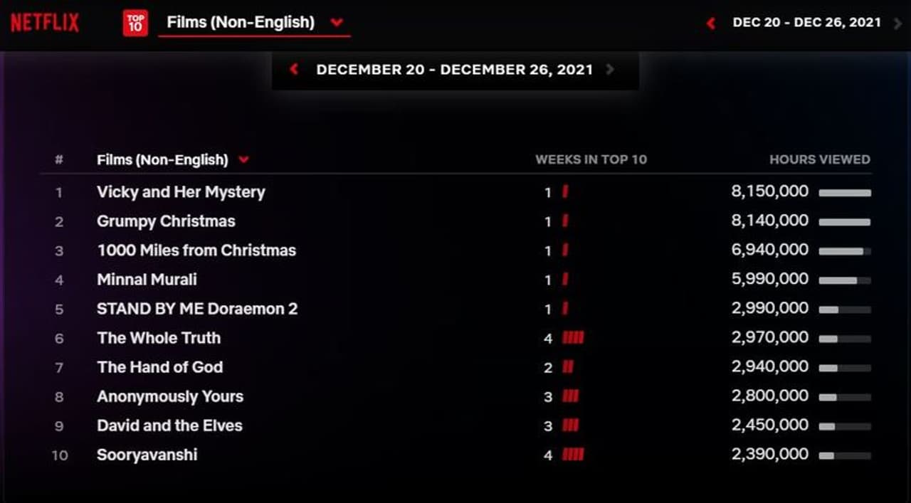 ആഗോള ടോപ്പ് 10 ലിസ്റ്റില്, ഇംഗ്ലീഷ് ഇതര ചിത്രങ്ങളില് നാലാം സ്ഥാനത്തുമാണ് മിന്നല് മുരളി