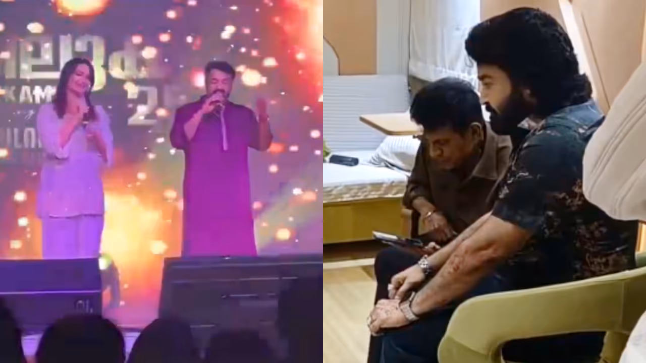 അതേസമയം മറ്റൊരു വീഡിയോയും സോഷ്യല് മീഡിയയില് വൈറല് ആവുന്നുണ്ട്, ഡോ. രാജ്കുമാറിന്റെ മകനും ജയിലര് 2 ല് മോഹന്ലാലിന്റെ സഹതാരവുമായ ശിവ രാജ്കുമാറിനൊപ്പം ജയിലര് 2 ലെ ഗെറ്റപ്പില് ഇരിക്കുന്ന മോഹന്ലാലിന്റെ വീഡിയോ ആണ് ഇത്. ഇതേ ഗാനം മോഹന്ലാല് ആലപിച്ചത് ഫോണില് കാണുന്ന ശിവ രാജ്കുമാറിനെ വീഡിയോയില് കാണാം. അമേരിക്കന് ഷോയ്ക്ക് മുന്പ് ഗാനത്തിന്റെ കന്നഡ ഉച്ചാരണം ശരിയാണോ എന്ന് പരിശോധിക്കുകയാണ് മോഹന്ലാല് എന്നാണ് ഈ വീഡിയോയ്ക്ക് താഴെ പലരും കുറിക്കുന്നത്. ജയിലര് 2 ലെ തന്റെ ഭാഗം മോഹന്ലാല് പൂര്ത്തിയാക്കിയതായി ഈ മാസം ആദ്യം റിപ്പോര്ട്ടുകള് എത്തിയിരുന്നു.