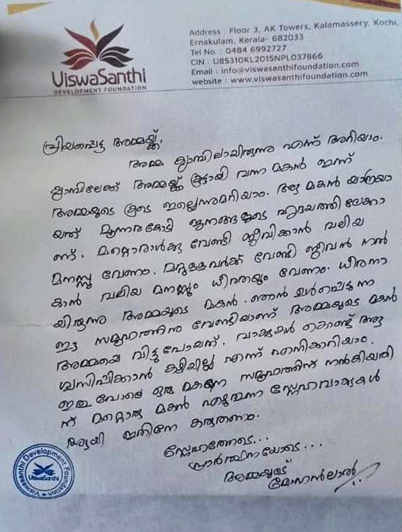 വിശ്വശാന്തി ഫൗണ്ടേഷന്റെ പ്രതിനിധിയായി മേജര് രവി ലിനുവിന്റെ വീട് സന്ദര്ശിച്ചു.