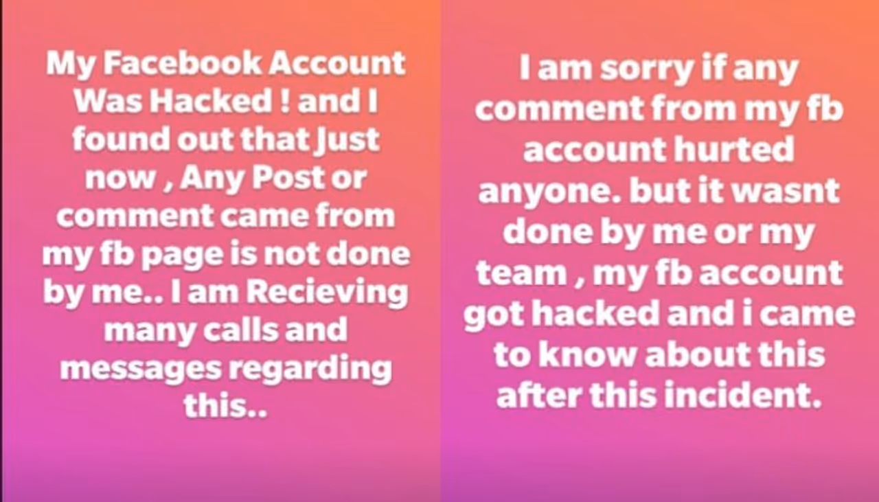 നടി നന്ദന വർമ്മയുടെ ഫേസ്ബുക്ക് അക്കൗണ്ട് ഹാക്ക് ചെയ്യപ്പെട്ടു. താരം തന്നെയാണ് ഇക്കാര്യം ഇൻസ്റ്റാഗ്രാം സ്റ്റോറിയിലൂടെ ആരാധകരെ അറിയിച്ചത്. തന്റെ അക്കൗണ്ടിൽ നിന്നും ഏതെങ്കിലും തരത്തിലുള്ള മോശം കമന്റുകളോ പോസ്റ്റുകളോ വന്നിട്ടുണ്ടെങ്കിൽ ക്ഷമ ചോദിക്കുന്നുവെന്നും നന്ദന കുറിക്കുന്നു.