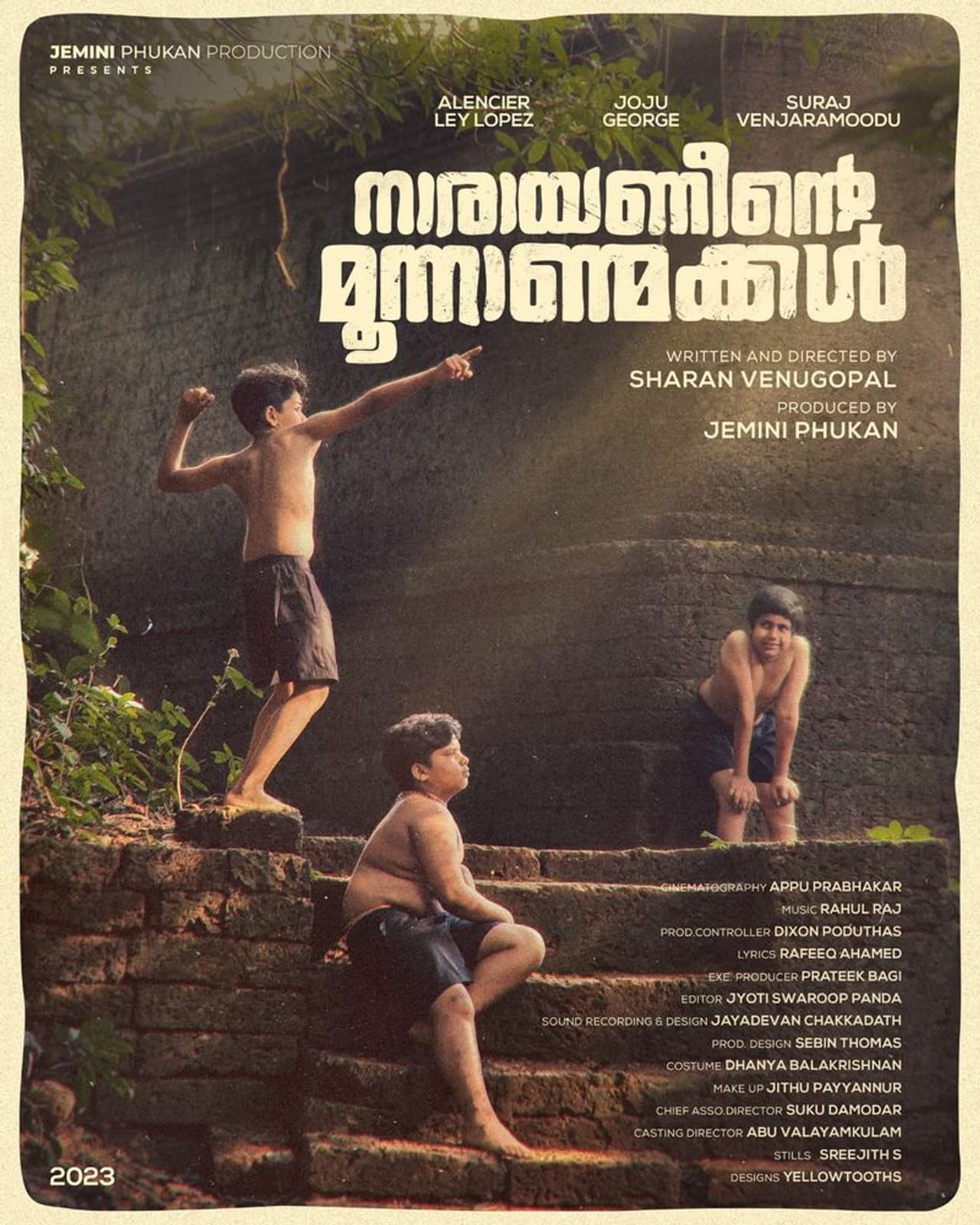 ജോജു ജോർജ്ജ്, സുരാജ് വെഞ്ഞാറമൂട്, അലന്സിയര് എന്നിവർ കേന്ദ്രകഥാപാത്രമായി എത്തുന്ന പുതിയ ചിത്രം പ്രഖ്യാപിച്ചു. ശരൺ വേണുഗോപാൽ രചനയും സംവിധാനവും നിർവഹിക്കുന്ന ചിത്രത്തിന്റെ പേര് "നാരായണീന്റെ മൂന്നാണ്മക്കൾ" എന്നാണ്.