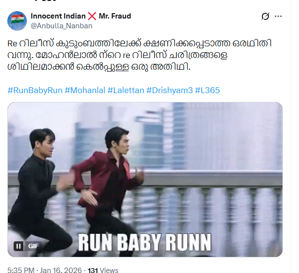 കഴിഞ്ഞ കുറച്ച് കാലമായി സിനിമാ മേഖലയിൽ കണ്ടുവരുന്ന ട്രെന്റാണ് റീ റിലീസുകൾ. മുൻ കാലങ്ങളിൽ റിലീസ് ചെയ്ത് വൻ ശ്രദ്ധനേടിയതും പരാജയപ്പെട്ടതും എന്നാൽ പ്രേക്ഷക സ്വീകാര്യത നേടിയതുമായ സിനിമകളായിരിക്കും റീ റിലീസായി വീണ്ടും തിയറ്ററിൽ എത്തുന്നത്. മലയാളത്തിലടക്കം ഈ ട്രെന്റ് നടക്കുന്നുണ്ട്. ഈ വർഷവും അതിന് മാറ്റമൊന്നും ഇല്ല. 2026ലെ ആദ്യ മലയാളം റീ റിലീസിന് തുടക്കമിട്ടത് മോഹൻലാൽ ആണ്. റൺ ബേബി റൺ ആണ് വീണ്ടും തിയറ്ററിൽ എത്തിയിരിക്കുന്നത്.