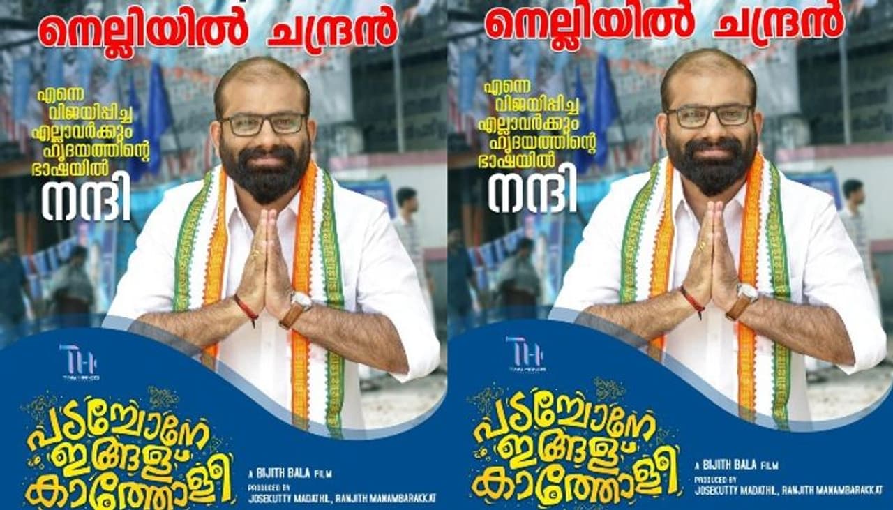 ബിജിത് ബാലയുടെ സംവിധാനത്തിലൊരുങ്ങുന്ന ഏറ്റവും പുതിയ ചിത്രം 'പടച്ചോനേ ഇങ്ങള് കാത്തോളീ’യുടെ(Padachone Ingalu Katholi) രണ്ടാം ക്യാരക്ടർ ലുക്ക് പുറത്തിറങ്ങി. രഞ്ജിത് മണംബ്രക്കാട്ട് അവതരിപ്പിക്കുന്ന നെല്ലിയിൻ ചന്ദ്രൻ എന്ന കഥാപാത്രത്തിന്റെ പോസ്റ്ററാണ് പുറത്തുവിട്ടിരിക്കുന്നത്. 'എന്നെ വിജയിപ്പിച്ച എല്ലാവർക്കും ഹൃദയത്തിന്റെ ഭാഷയിൽ നന്ദി' എന്ന ക്യാപ്ഷനിലാണ് പുറത്തിറങ്ങിയ പോസ്റ്ററിൽ വെള്ള വസ്ത്രം ധരിച്ച് സ്ഥാനാർത്ഥിയുടെ വേഷത്തിലാണ് നെല്ലിയിൻ ചന്ദ്രനെ കാണിച്ചിരിക്കുന്നത്.