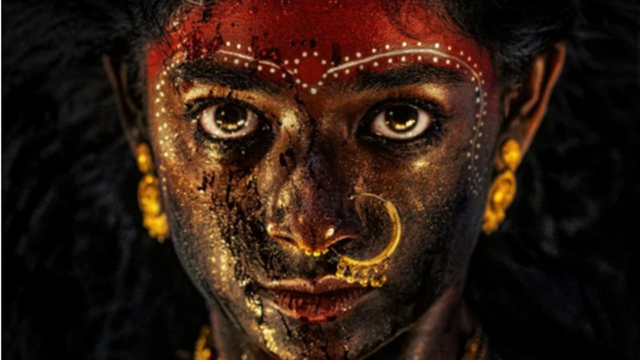 കാളി ദേവിയുമായി ആഴത്തിൽ ബന്ധപ്പെട്ടിരിക്കുന്ന ബംഗാളിന്റെ പശ്ചാത്തലത്തിലാണ് ഈ ചിത്രം ഒരുക്കുന്നത്. മഹാകാളിയുടെ ആദ്യ രൂപം അതിൻറെ ദൈവിക തീവ്രതയും സൌന്ദര്യവും കൊണ്ട് തൽക്ഷണം ശ്രദ്ധ ആകർഷിക്കുന്നു. ജ്വലിക്കുന്ന ചുവന്ന നിറം, ആഴത്തിലുള്ള സ്വർണ്ണം എന്നിവയുടെ ഷേഡുകളിൽ ആണ് ടൈറ്റിൽ കഥാപാത്രത്തെ അവതരിപ്പിക്കുന്ന ഭൂമി ഷെട്ടിയെ പോസ്റ്ററിൽ കാണാൻ സാധിക്കുന്നത്. ദേവിയുടെ സത്തയെ പ്രതിഫലിപ്പിക്കുന്ന ഒരു പ്രതീകാത്മക ശക്തി, ഈ ലുക്കിലൂടെ ഭൂമി ഷെട്ടിയിൽ കാണാൻ സാധിക്കും. പരമ്പരാഗത ആഭരണങ്ങളും പവിത്രമായ അടയാളങ്ങളും കൊണ്ട് അലങ്കരിച്ച നായികയുടെ രൂപവും അവളുടെ തുളച്ചുകയറുന്ന നോട്ടവും, മഹാകാളിയുടെ ശാശ്വതമായ ദ്വൈതതയുടെ നാശത്തെയും പുനർജന്മത്തെയും പ്രതീകപ്പെടുത്തുന്ന കോപവും കൃപയും ആണ് കാണിച്ചു തരുന്നത്.