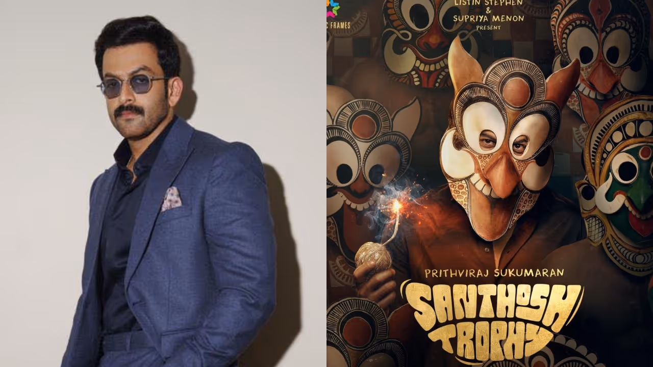 വിപിൻദാസ് സംവിധാനം ചെയ്യുന്ന 'സന്തോഷ് ട്രോഫി' എന്ന പുതിയ ചിത്രത്തിന്റെ ഫസ്റ്റ് ലുക്ക് പുറത്തിറങ്ങി. പൃഥ്വിരാജ് നായകനായി എത്തുന്ന ഈ സിനിമയിൽ അദ്ദേഹത്തോടൊപ്പം അറുപതോളം പുതുമുഖങ്ങളും പ്രധാന വേഷങ്ങളിൽ എത്തുന്നു.