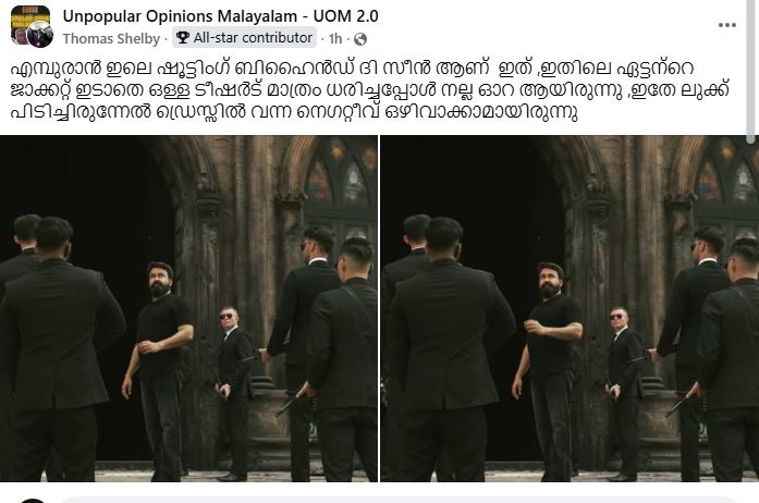 മലയാള സിനിമയുടെ ചരിത്രത്തിലെ തന്നെ ഏറ്റവും വലിയ ബിഗ് കാന്വാസ് ചിത്രങ്ങളില് ഒന്നായിരുന്നു എമ്പുരാന്. വന് വിജയം നേടിയ ലൂസിഫറിന്റെ സീക്വല് എന്ന നിലയില് വന് പ്രീ റിലീസ് ഹൈപ്പിലുമാണ് ചിത്രം തിയറ്ററുകളില് എത്തിയത്. എന്നാല് പ്രേക്ഷക പ്രതീക്ഷകളുടെ അമിതഭാരവുമായി എത്തിയ ചിത്രത്തിന് അതിനൊത്ത പ്രതികരണം നേടാന് ആയില്ല. അതേസമയം ബോക്സ് ഓഫീസില് വന് കളക്ഷനും നേടി ചിത്രം. ചിത്രം റിലീസിന്റെ ഒരു വര്ഷം പൂര്ത്തിയാക്കിയത് കഴിഞ്ഞ വര്ഷം ആയിരുന്നു. ഇതിനോടനബന്ധിച്ച് നിര്മ്മാതാക്കളായ ആശിര്വാദ് സിനിമാസ് ഒരു ബിഹൈന്ഡ് ദി സീന്സ് വീഡിയോയും പുറത്തുവിട്ടിരുന്നു. അതിന് പിന്നാലെ സിനിമാപ്രേമികളില് കൗതുകകരമായ ഒരു വിമര്ശനവും ഉയര്ന്നു. ചിത്രത്തിലെ മോഹന്ലാലിന്റെ കോസ്റ്റ്യൂംസിനെ സംബന്ധിച്ച് ആണ് അത്.
