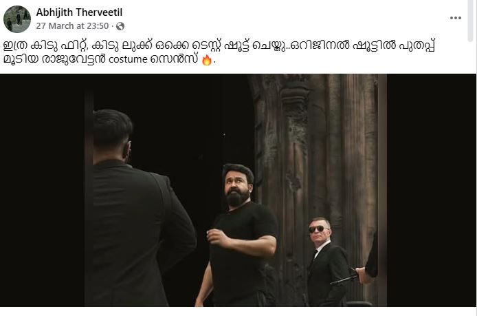 എന്നാല് പുറത്തെത്തിയ പുതിയ ബിടിഎസ് വീഡിയോയിലെ ടെസ്റ്റ് ഷൂട്ടില് കോട്ട് ഇടാതെ ടീ ഷര്ട്ട് മാത്രം ധരിച്ച മോഹന്ലാലിന്റെ ദൃശ്യങ്ങളുണ്ട്. ഫിറ്റ് ആയ ശരീരത്തോടെ നില്ക്കുന്ന മോഹന്ലാലിനെ ഇത്തരത്തിലുള്ള ലളിതമായ കോസ്റ്റ്യൂംസില് അവതരിപ്പിച്ചാല് പോരായിരുന്നോ എന്നാണ് സിനിമാഗ്രൂപ്പുകളിലും മറ്റും വരുന്ന വിവിധ പോസ്റ്റുകള്. ആ നീളമുള്ള കോട്ട് ഒഴിവാക്കാമായിരുന്നുവെന്നും രാജുവേട്ടന് (പൃഥ്വിരാജ്) കോസ്റ്റ്യൂം സെന്സ് ഇല്ലെന്നുമൊക്കെ കമന്റുകള് വരുന്നുണ്ട്. ലൂസിഫര് മൂന്നാം ഭാഗമായ എസ്രായേല് ഉണ്ടാവുമെന്ന് നിര്മ്മാതാവായ ആന്റണി പെരുമ്പാവൂര് വ്യക്തമാക്കിയിട്ടുണ്ട്. എന്നാല് അത് എപ്പോള് നടക്കുമെന്നത് സംബന്ധിച്ച അറിയിപ്പുകളൊന്നും ഇനിയും എത്തിയിട്ടില്ല.