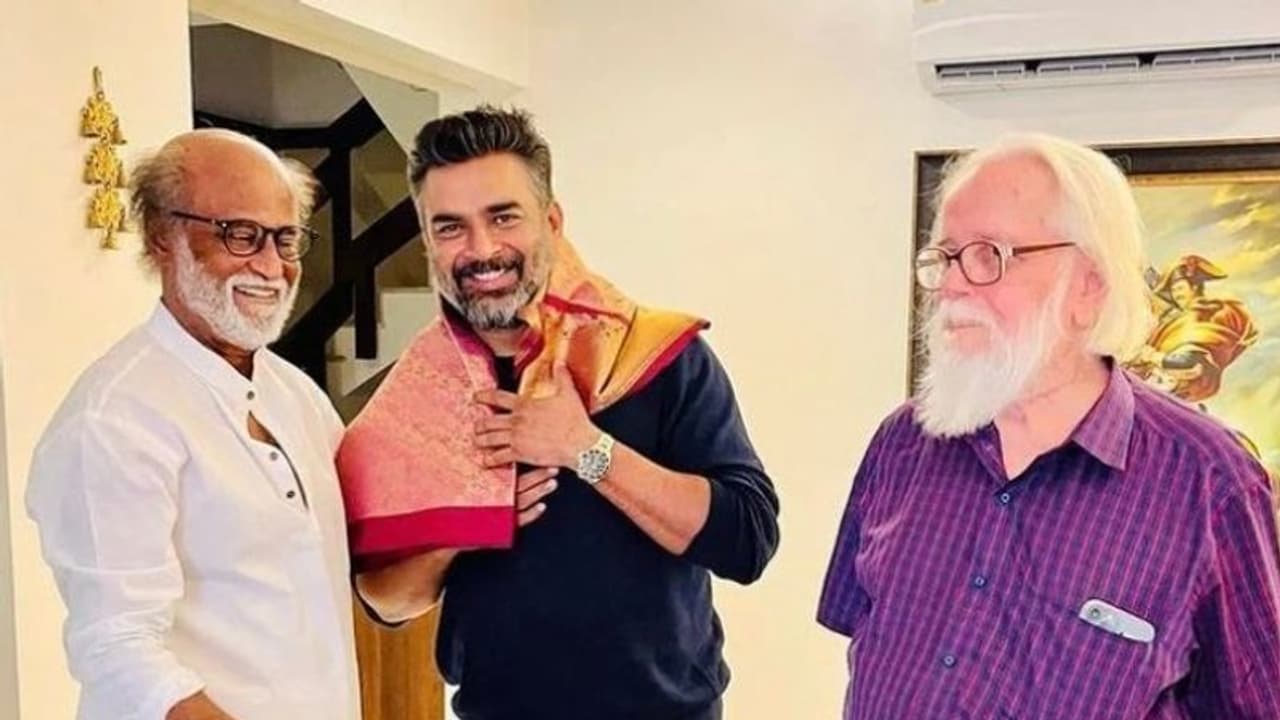 കരിയറില് ആദ്യമായി സംവിധാനം ചെയ്ത ചിത്രം പ്രേക്ഷകാംഗീകാരം നേടിയതിന്റെ ആഹ്ലാദത്തിലാണ് ആര് മാധവന് (R Madhavan). ബോക്സ് ഓഫീസിലും ചിത്രം മികച്ച പ്രകടനം നടത്തിയിരുന്നു. ബഹിരാകാശ ശാസ്ത്രജ്ഞന് നമ്പി നാരായണന്റെ ജീവിതം പറഞ്ഞ റോക്കട്രിയുടെ (Rocketry) രചനയും ഒപ്പം കേന്ദ്ര കഥാപാത്രമായ നമ്പി നാരായണനെ അവതരിപ്പിച്ചതും മാധവന് ആയിരുന്നു. ഇപ്പോഴിതാ തമിഴ് സൂപ്പര് താരം രജനീകാന്തിന്റെ അഭിനന്ദനം ഏറ്റുവാങ്ങിയിരിക്കുകയാണ് മാധവന്. നമ്പി നാരായണനൊപ്പമാണ് മാധവന് രജനീകാന്തിനെ സന്ദര്ശിച്ചത്. ഇതിന്റെ വീഡിയോ മാധവന് തന്നെ സോഷ്യല് മീഡിയയിലൂടെ പങ്കുവച്ചു.
