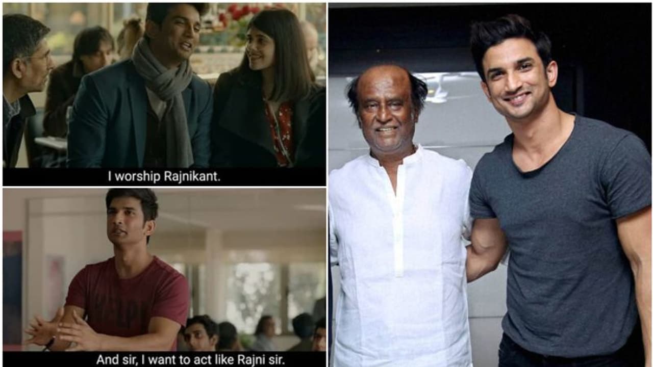 മാനി എന്നു വിളിപ്പേരുള്ള ഇമ്മാനുവല് രാജ്കുമാര് ജൂനിയര് എന്ന കഥാപാത്രമായാണ് സുശാന്ത് ചിത്രത്തില് എത്തുന്നത്. ഒരു സിനിമാമോഹിയും രജനി ആരാധകനുമാണ് ഈ കഥാപാത്രം. രജനി സിനിമകളുടെ ടൈറ്റിലുകളുടെ തുടക്കത്തിലുള്ള 'സൂപ്പര് സ്റ്റാര്' എന്ന വിശേഷണം സ്ക്രീനിലെത്തുമ്പോഴുള്ള പശ്ചാത്തലസംഗീതമാണ് ദില് ബേചാരയില് സുശാന്ത് കഥാപാത്രത്തിന്റെ ഇന്ട്രൊഡക്ഷന് സീനില് സംവിധായകന് നല്കിയിരിക്കുന്നത്. മാനിയുടെ സുഹൃത്തായ ജെപി എന്ന കഥാപാത്രം ഒരു ഭോജ്പുരി സിനിമ സംവിധാനം ചെയ്യുന്നുണ്ട് ചിത്രത്തില്. 'രജനി ആവത് ഹെ, സപ്നെ ജഗാവത് ഹെ' (രജനി വരുന്നു, സ്വപ്നങ്ങള്ക്ക് ഉത്തേജനം പകരുന്നു) എന്നാണ് ആ സിനിമയുടെ ടൈറ്റില്. 'എനിക്ക് രജനി സാറിനെപ്പോലെ അഭിനയിക്കണ'മെന്നാണ് ചിത്രത്തില് സുശാന്ത് പറയുന്ന ഒരു ഡയലോഗ്. അന്ത്യത്തോടടുത്ത നിര്ണ്ണായകമായൊരു രംഗത്തില് സുശാന്തിന്റെ മാനി തീയേറ്ററിലിരുന്ന് രജനി ചിത്രമായ കബാലി കാണുകയാണ്.
