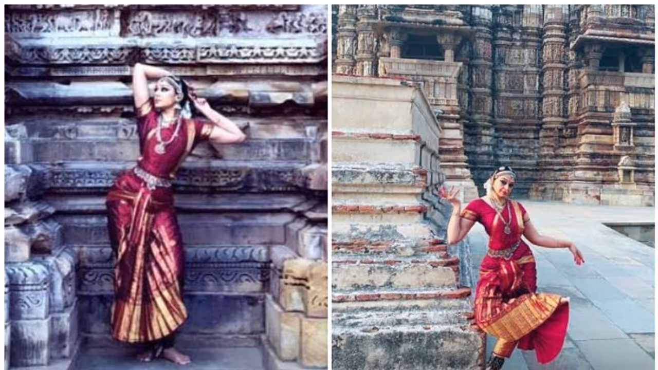 ഖജുരാഹോ ക്ഷേത്രങ്ങളുടെ പശ്ചാത്തലത്തില് നില്ക്കുന്ന ശോഭനയുടെ ഫോട്ടോയാണ് ആരാധകര്ക്കിടയില് ചര്ച്ചയാകുന്നത്.