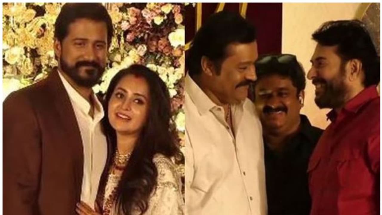 മമ്മൂക്കയോടൊപ്പം എന്ന് എഴുതിയാണ് സുരേഷ് ഗോപി ഫോട്ടോ ഷെയര് ചെയ്തിരിക്കുന്നത്. നടി ഭാമയുടെ വിവാഹ വിരുന്നിന് എത്തിയപ്പോഴാണ് ഇരുവരും തമ്മില് കണ്ടത്. സുരേഷ് ഗോപി ഭാര്യ രാധികയ്ക്കും മകള് ഭവ്നിക്കും ഒപ്പമാണ് ചടങ്ങിന് എത്തിയത്. വ്യവസായിയായ അരുണാണ് ഭാമയുടെ വരൻ. നിവേദ്യം എന്ന സിനിമയിലൂടെ വെള്ളിത്തിരയിലെത്തിയ ഭാമ മലയാളത്തിനു പുറമേ തെലുങ്ക്, തമിഴ്, കന്നഡ ഭാഷകളിലും നായികയായി അഭിനയിച്ചിട്ടുണ്ട്.