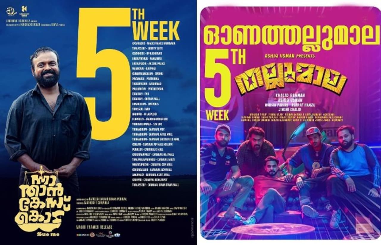 ബിഗ് ബജറ്റ് ഇതരഭാഷാ ചിത്രങ്ങള് തിയറ്ററുകളില് ആളെക്കൂട്ടുമ്പോള് മലയാള ചിത്രങ്ങള് ആളില്ല എന്ന ആശങ്കയ്ക്കും ചര്ച്ചകള്ക്കുമിടയിലാണ് ആ തോന്നല് തിരുത്തിക്കുറിച്ച് രണ്ട് ചിത്രങ്ങള് എത്തിയത്. കുഞ്ചാക്കോ ബോബനെ നായകനാക്കി രതീഷ് ബാലകൃഷ്ണന് പൊതുവാള് സംവിധാനം ചെയ്ത ന്നാ താന് കേസ് കൊട് എന്ന ചിത്രവും ടൊവിനോ തോമസിനെ നായകനാക്കി ഖാലിദ് റഹ്മാന് സംവിധാനം ചെയ്ത തല്ലുമാലയുമാണ് ആ ചിത്രങ്ങള്. ഇതില് ന്നാ താന് കേസ് കൊട് ഓഗസ്റ്റ് 11നും തല്ലുമാല 12നുമാണ് തിയറ്ററുകളില് എത്തിയത്. ഓണം റിലീസുകള് എത്തിയിട്ടും അഞ്ചാം വാരത്തിലും തിയറ്ററുകളില് ഈ ചിത്രങ്ങള് പ്രദര്ശനം തുടരുകയാണ്.