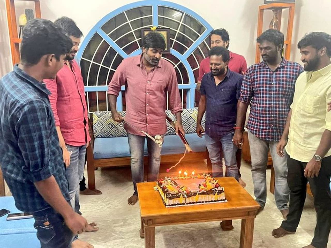 സിനിമയുടെ അണിയറക്കാര്ക്കൊപ്പം സ്വന്തം ഓഫീസില് നിന്നുള്ള പിറന്നാളാഘോഷത്തിന്റെ ചിത്രങ്ങള് നേരത്തെ സോഷ്യല് മീഡിയയില് എത്തിയിരുന്നു. വാള് ഉപയോഗിച്ച് വിജയ് സേതുപതി കേക്ക് മുറിക്കുന്നതിന്റെ ചിത്രങ്ങളായിരുന്നു ഇവ
