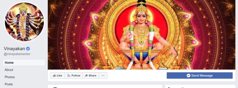 രണ്ടേമുക്കാല് ലക്ഷത്തോളം ലൈക്കുള്ള തന്റെ പേജിന്റെ പ്രോഫൈല് ചിത്രവും കവര് ഇമേജും മാറ്റിയാണ് വിനായകന്റെ പ്രതികരണം. പ്രോഫൈല് ചിത്രം കാളിയും, കവര് ചിത്രം അയ്യപ്പനുമാണ് ഇപ്പോള്.