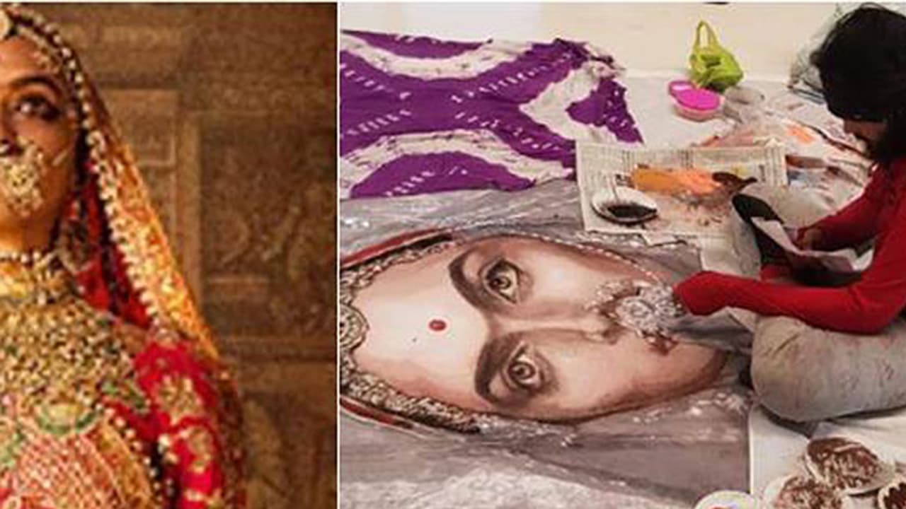 ചിത്രത്തിലെ നായികയായ പത്മാവതിയുടെ മുഖമാണ് ചായക്കൂട്ടില് ഗുജറാത്ത് കലാകാരനായ കരൺ ഒരുക്കിയത്. 48 മണിക്കൂറുകള് കൊണ്ടാണ് കരൺ ഇതൊരുക്കിയത്. ഗുജറാത്തിലെ സൂറത്തിൽ ഒരുക്കിയ കലാരൂപമാണ് ജയ് ശ്രീറാം വിളികളുമായി എത്തിയ നൂറോളം വരുന്ന അക്രമിസംഘം പൂർണമായി നശിപ്പിച്ചത്.