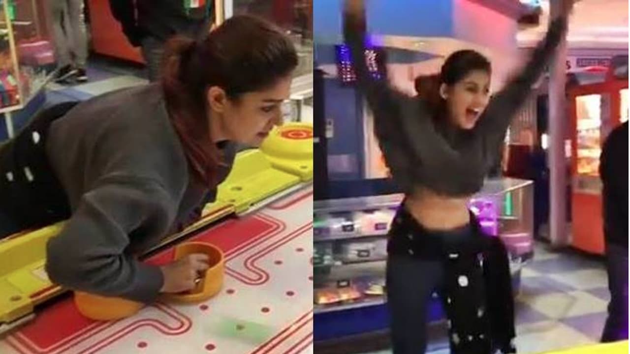 വിഘ്നേശ് പോസ്റ്റ് ചെയ്ത മറ്റൊരു വീഡിയോ ആണ് ഇപ്പോൾ സോഷ്യൽ മീഡിയയിൽ വൈറലാവുന്നത്. നയൻതാരയ്ക്കൊപ്പം എയർ ഹോക്കി കളിക്കുന്ന വീഡിയോയാണ് വിഘ്നേശ് ഇൻസ്റ്റഗ്രാമിൽ പോസ്റ്റ് ചെയ്തത്. മൽസരത്തിൽ വിഘ്നേശിനെ നയൻതാര പുഷ്പം പോലെ തോൽപ്പിച്ചു. ഒപ്പം നയന്സിന്റെ ആഘോഷവും സോഷ്യല് മീഡിയ ഏറ്റെടുത്തു. ഒരു കൊച്ചുകുട്ടിയെപ്പോലെ തുള്ളിച്ചാടി ആഹ്ളാദിക്കുകയാണ് വീഡിയോയില് നയന്സ്.