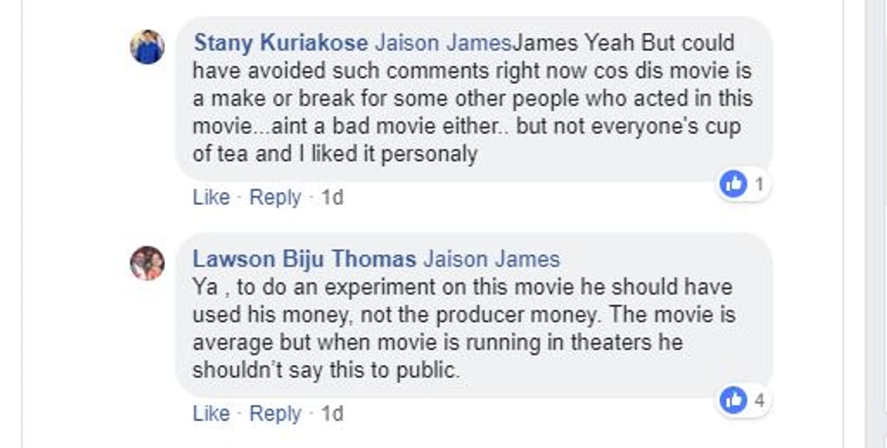 താന് ചെയ്യുന്ന എല്ലാ സിനിമകളും വിജയിക്കില്ലെന്നും അത് അറിഞ്ഞുകൊണ്ട് പലപ്പോഴും പരീക്ഷണങ്ങള്ക്ക് തയ്യാറാണെന്നും രണം പോലെയുള്ള സിനിമകള് അക്കൂട്ടത്തില് പെടുന്നതാണെന്നുമൊക്കെയായിരുന്നു പൃഥ്വിയുടെ അഭിപ്രായപ്രകടനം. ഇതിനോട് നേരിട്ട് പ്രതികരിക്കുകയാണ് ചിത്രത്തിന്റെ സഹനിര്മ്മാതാക്കളായ ലോസണ് എന്റര്ടെയ്ന്മെന്റ് ഉടമ ബിജു ലോസണ്. റഹ്മാന് ഫേസ്ബുക്കില് നടത്തിയ പ്രതികരണത്തിന് താഴെ നടന്ന ചര്ച്ചയിലാണ് ബിജു ലോസണിന്റെ പ്രതികരണം. പൃഥ്വി പറഞ്ഞത് വസ്തുതയാണെന്നും ചിത്രം ഗംഭീരമാണെന്നതില് സംശയമില്ലെന്നും പക്ഷേ പ്രേക്ഷക പ്രതികരണം ആവറേജ് ആയിരുന്നുവെന്നും ഒരു പ്രേക്ഷകന് ബിജു ലോസണെ ടാഗ് ചെയ്തുകൊണ്ട് അഭിപ്രായപ്പെടുകയായിരുന്നു. ഇതിനോടാണ് അദ്ദേഹം പ്രതികരിച്ചത്. അതിങ്ങനെ.